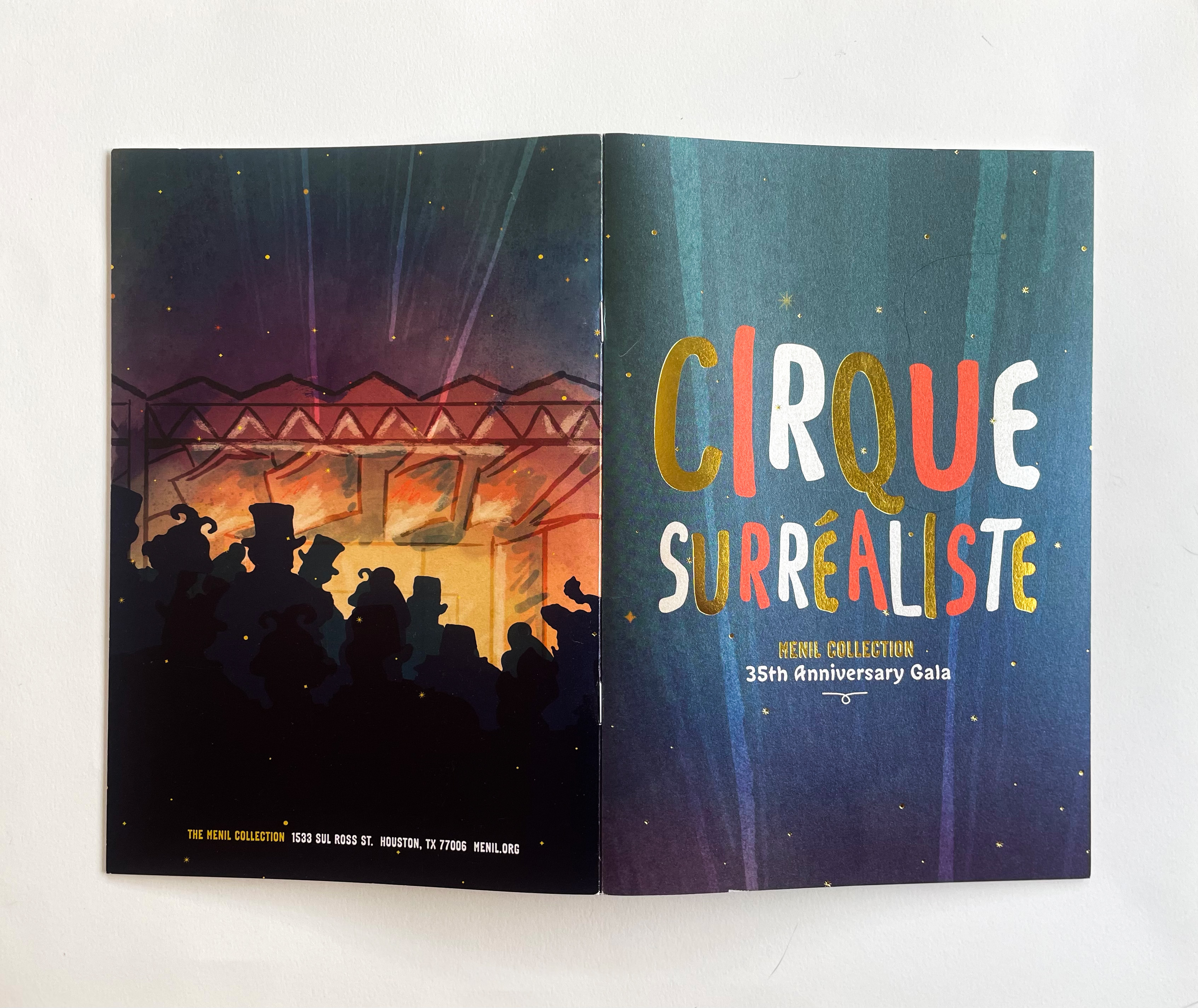 Visual identity for The Menil Collection for their 35th Anniversary gala event, Cirque Surréaliste.